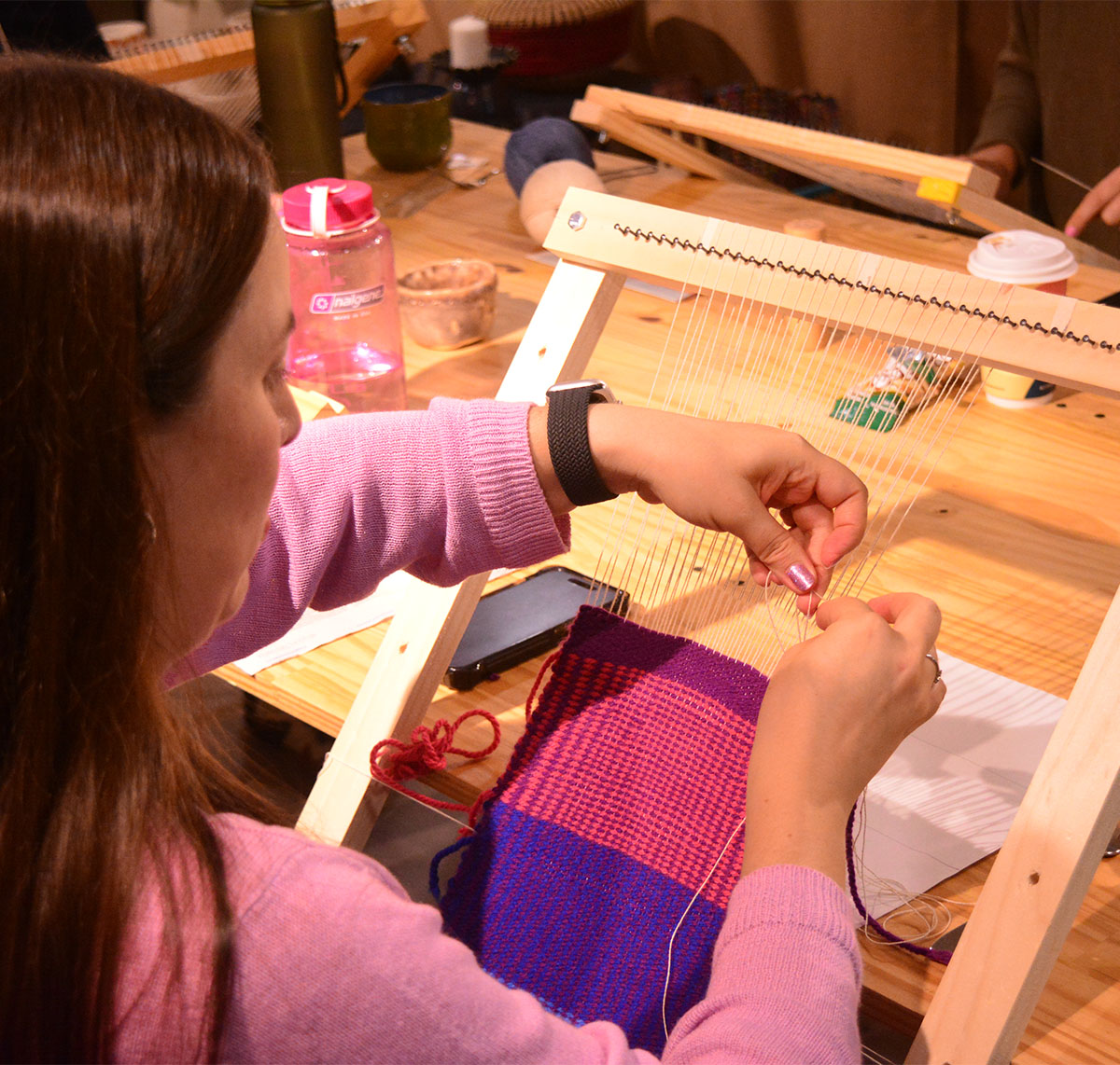 Costos: $ 650.000 pesos colombianos* incluye un telar de marco y los insumos para la elaboración de muestras y tejidos desarrollados en el marco del curso.